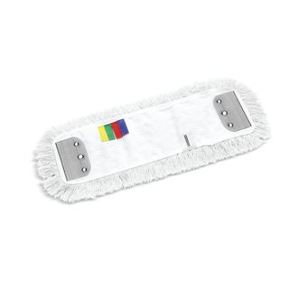 Хлопковый моп Karcher с длинным ворсом и бахромой по краям отлично подходит для очистки твёрдых напольных покрытий любой структуры от большого количества сухой и влажной грязи. Размер 40x13 см. Используется вместе с держателем Karcher (6.999-098.0) с зажимами шириной 40 см, крепится к нему с помощью люверсов, расположенных с двух сторон.