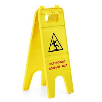 Предупреждающий знак с надписью: «Осторожно мокрый пол».