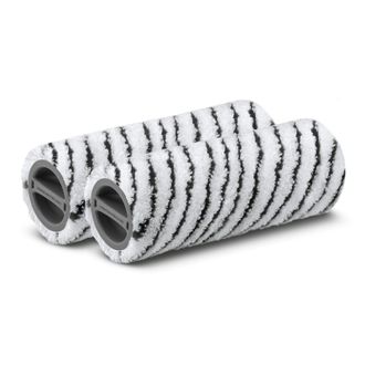 2 роликовые щетки из микроволокна для влажной уборки стойких загрязнений, в том числе из швов между плитками, с любых твердых покрытий с помощью аппаратов для влажной уборки пола серии FC. Допускается очистка в стиральной машине при температуре 60 градусов.