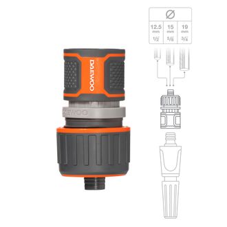 - Универсальный коннектор подходит для шланга диаметром от 13 до 19 мм